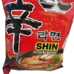 Sus fideos gruesos y firmes absorben perfectamente el caldo especiado, mientras que los vegetales deshidratados (como cebolla verde, zanahoria y col) aportan textura y sabor natural. Es el ramen perfecto para quienes buscan el auténtico sabor picante de Corea del Sur, con el nivel de calor que lo ha hecho legendario.